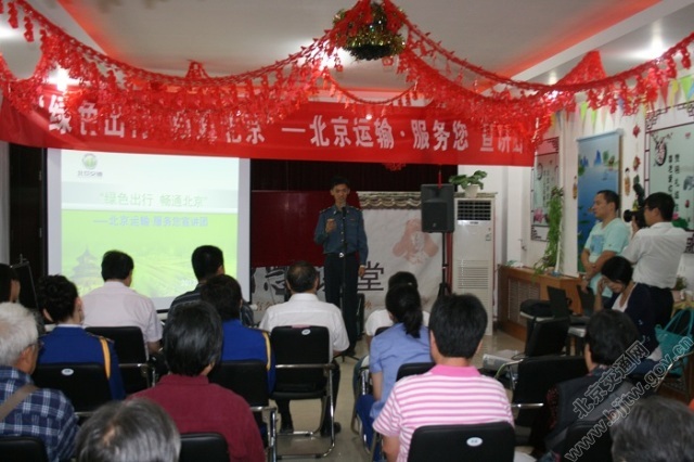 近日,市交通委运输管理局组织的“绿色出行 畅通北京”——北京运输?服务您宣讲团走进石景山,就当地开通的公交专11路运营计划征求当地居民意见,回答居民疑问。同时,向当地居民介绍我市交通发展现状、公交车乘坐常识,倡导居民优先选择公共交通工具,绿色出行。