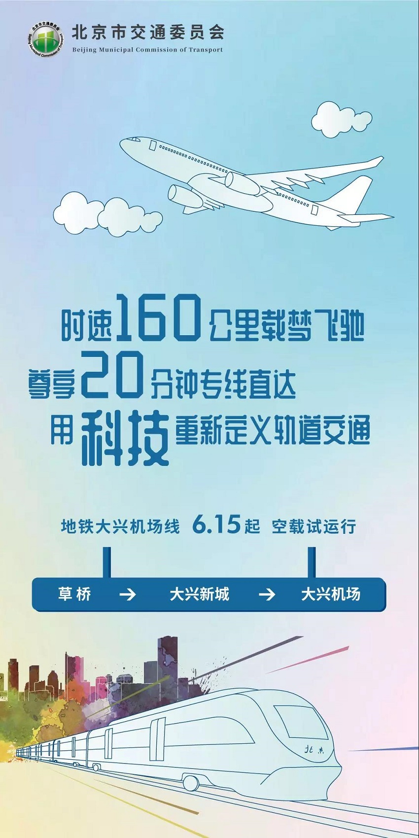 随着北京大兴国际机场通航,部分航空公司迁址,一些航空旅客将也将由首都国际机场分流至大兴机场,新机场线的开通,将为中心城区、丰台、大兴、房山、通州等区的出行旅客提供了更为便捷的交通条件,对带动大兴地区经济文化发展也起着至关重要的作用。同时也呼吁广大航空旅客绿色出行,助力北京低碳城市发展,推进首都生态文明建设。