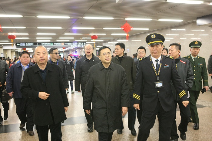 3月10日,市交通委主任周正宇带队,先后到宣武门地铁站、北京西站地铁站和六里桥长途客运站检查安检工作,并慰问协检武警官兵。市交通委委员逯福全、武警北京总队副参谋长房涛陪同检查慰问。