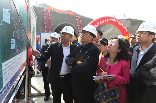 4月13日,兴延高速石峡隧道爆破成功, 周正宇亲临现场指导工作,方平一同参加。