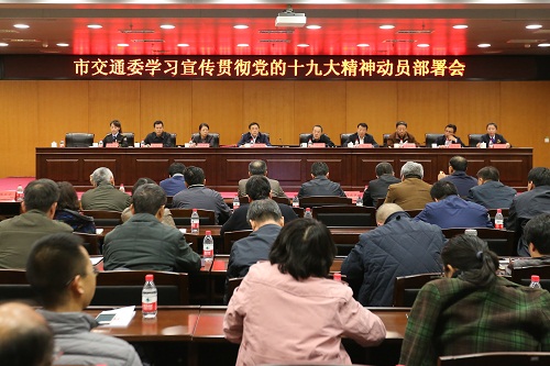 10月30日,为全面学习宣传贯彻党的第十九次全国代表大会精神,根据市委统一部署,市交通委召开学习宣传贯彻党的十九大精神动员部署会。委党组书记、主任周正宇同志作党的十九大精神学习宣传贯彻的动员部署,大会同时邀请了我市交通行业党的十九大代表刘美莲和方秋子同志作报告。委领导班子成员,委路政局、运输局、交通执法总队领导班子成员及委系统正处级领导干部,委机关直属单位党员干部在主会场参加会议,委系统3000余名党员干部分别在分会场参加IP视频会议。