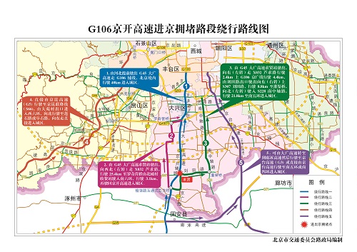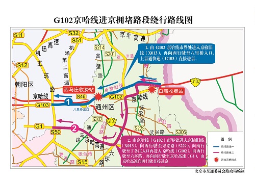 与其他免通假期相比,春节假期交通以长途回家过年和短途走亲访友为主,民俗庙会、重要景区景点周边交通将会比较集中。预计假期交通运行总体相对平稳,假日末期各高速公路进京方向可能易发生交通拥堵。重点路段高峰时段会出现交通压力集中的情况,其中15日、20日、21日为重点日。每日上午9时至12时、下午14时至18时为路网总体交通压力较大的时段,峰值可能出现在上午10时至11时。假期前期出京方向和假期后期进京方向交通压力将相对突出。交通压力分布呈现不均衡的特点,京藏高速、京开高速、京承高速、京港澳高速、京通快速等常态压力集中的高速公路交通压力仍将较为突出,机场高速低于平日水平。如遇低能见度、降雪等不利天气、交通事故或周边省市相关情况将对我市高速公路运行产生影响。