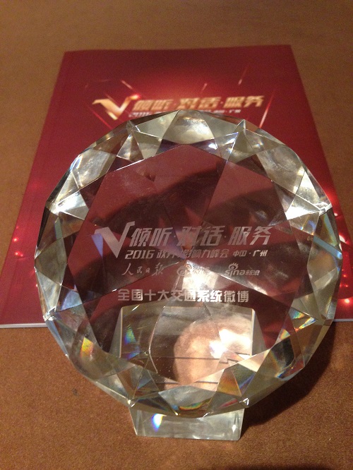 近日,在2016政务V影响力峰会上,市交通委官方微博 @交通北京荣获2015年全国十大交通系统微博,也是唯一入选TOP10的交通政府部门微博。这是@交通北京连续四年获得该称号。该奖项由人民日报、新浪网、微博联合颁发。