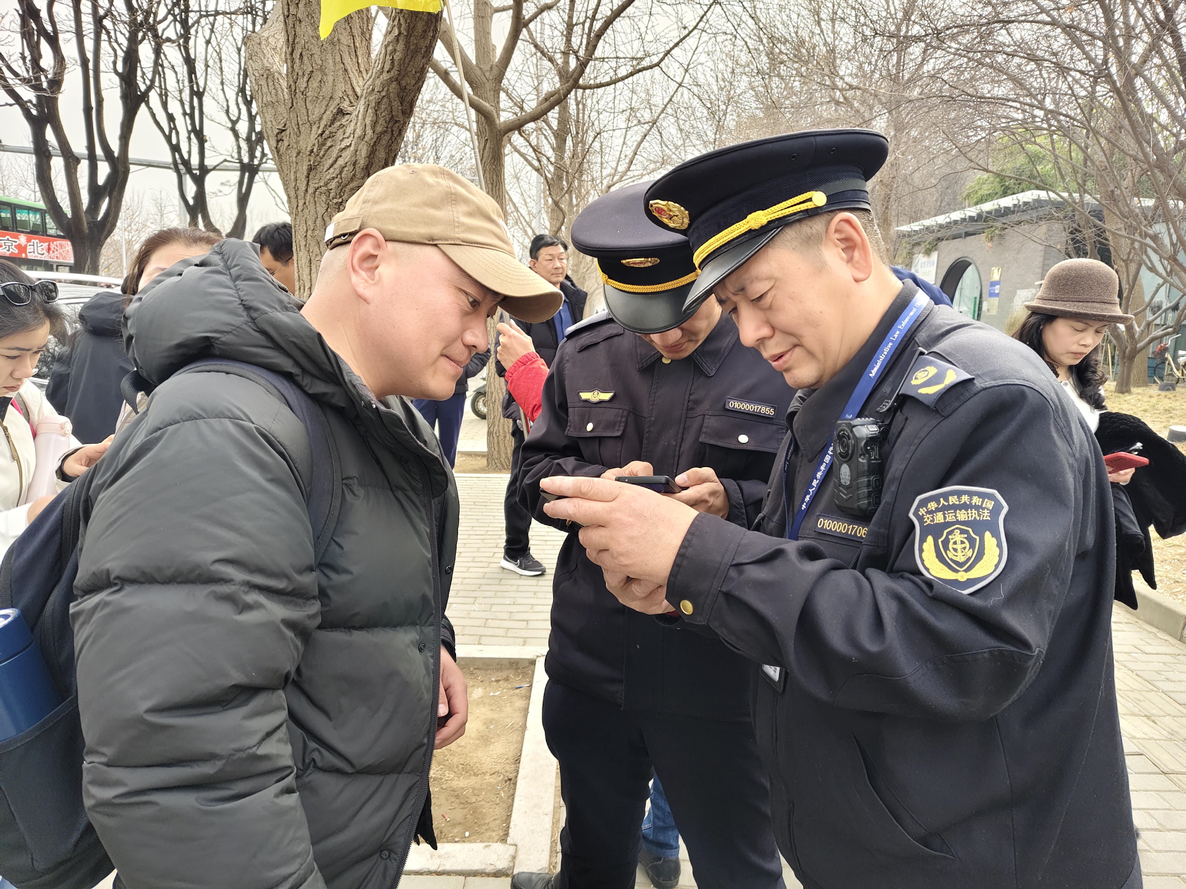 市交通运输执法总队执法队员为游客指引路线